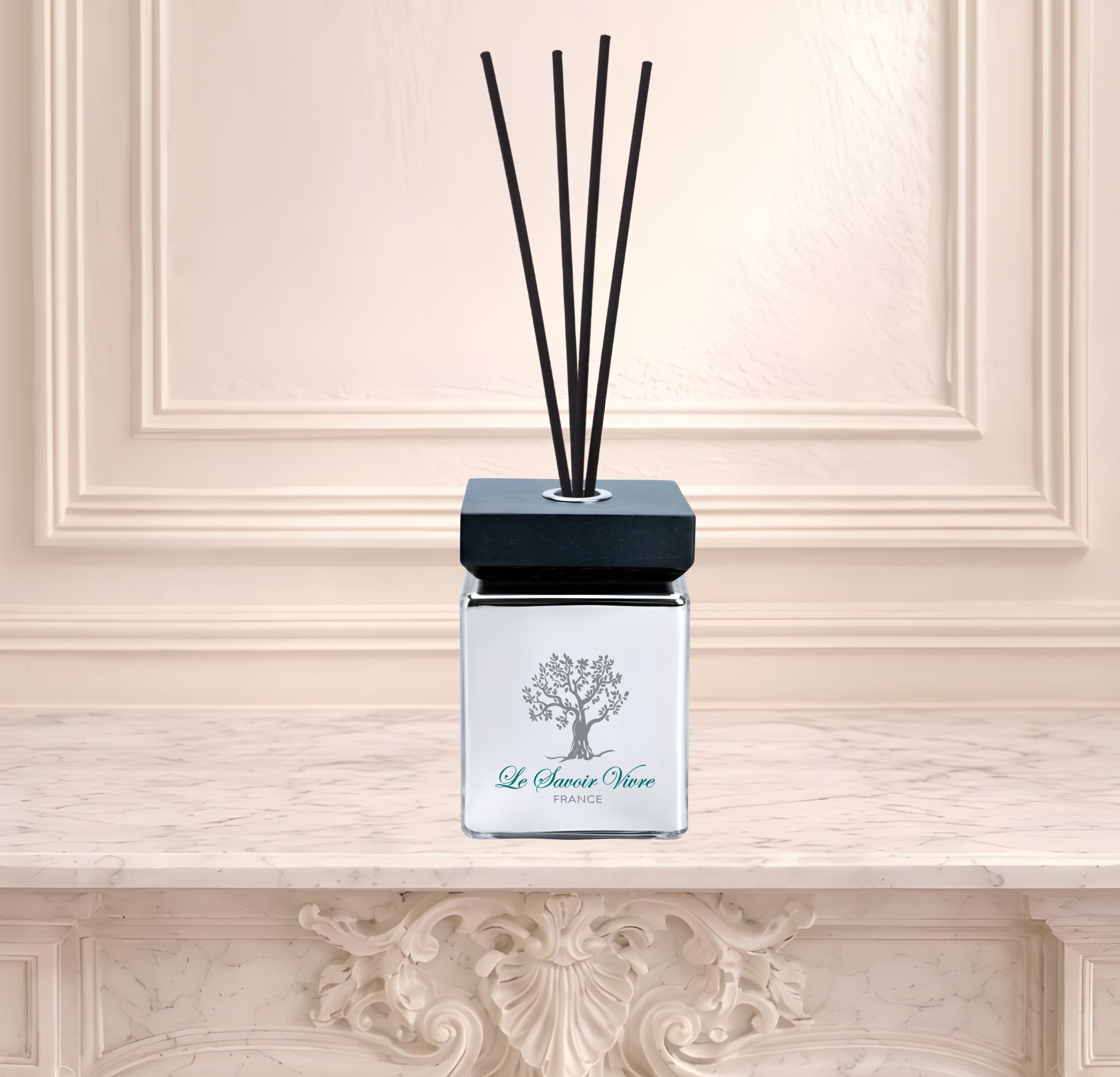 Carefully crafted in our workshop in Valbonne, in the South of France, each diffuser releases a refined fragrance, designed to diffuse subtly and prolong a feeling of beauty and harmony in the air. Adorned with luminous finishes—gold, silver, and rose gold—these objects combine decorative presence with olfactory refinement.