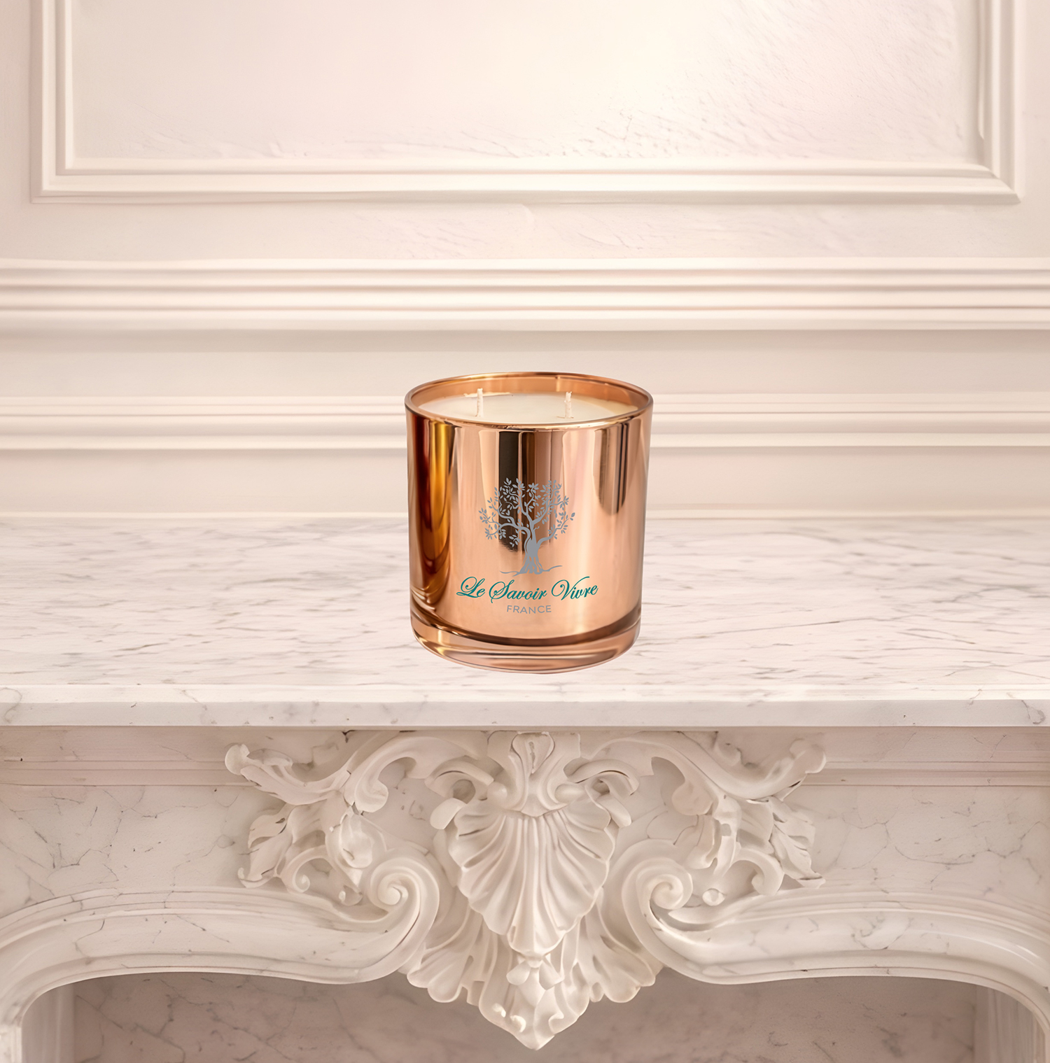 Déclinées en Or, Argent et Or Rose, ces bougies d’exception sont créées pour transformer l’atmosphère d’une pièce par leur beauté visuelle et leur parfum raffiné. Plus qu’une bougie, chaque pièce est un objet décoratif de distinction — conçu pour apporter chaleur, sophistication et allure intemporelle aux intérieurs élégants.